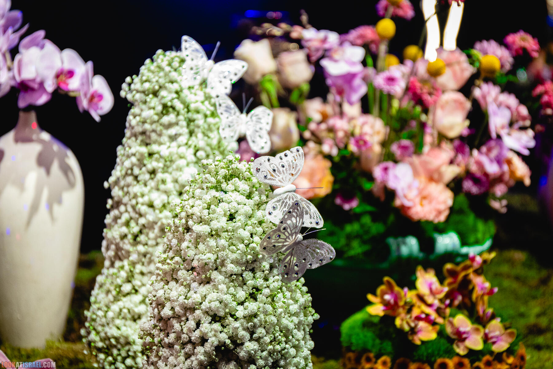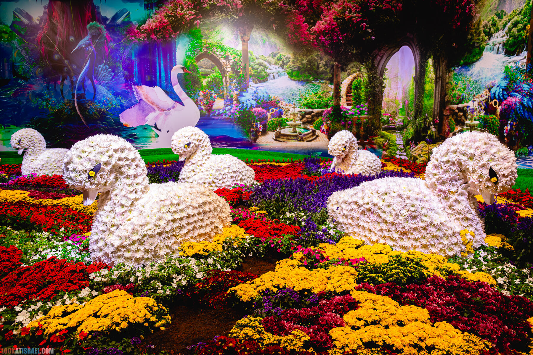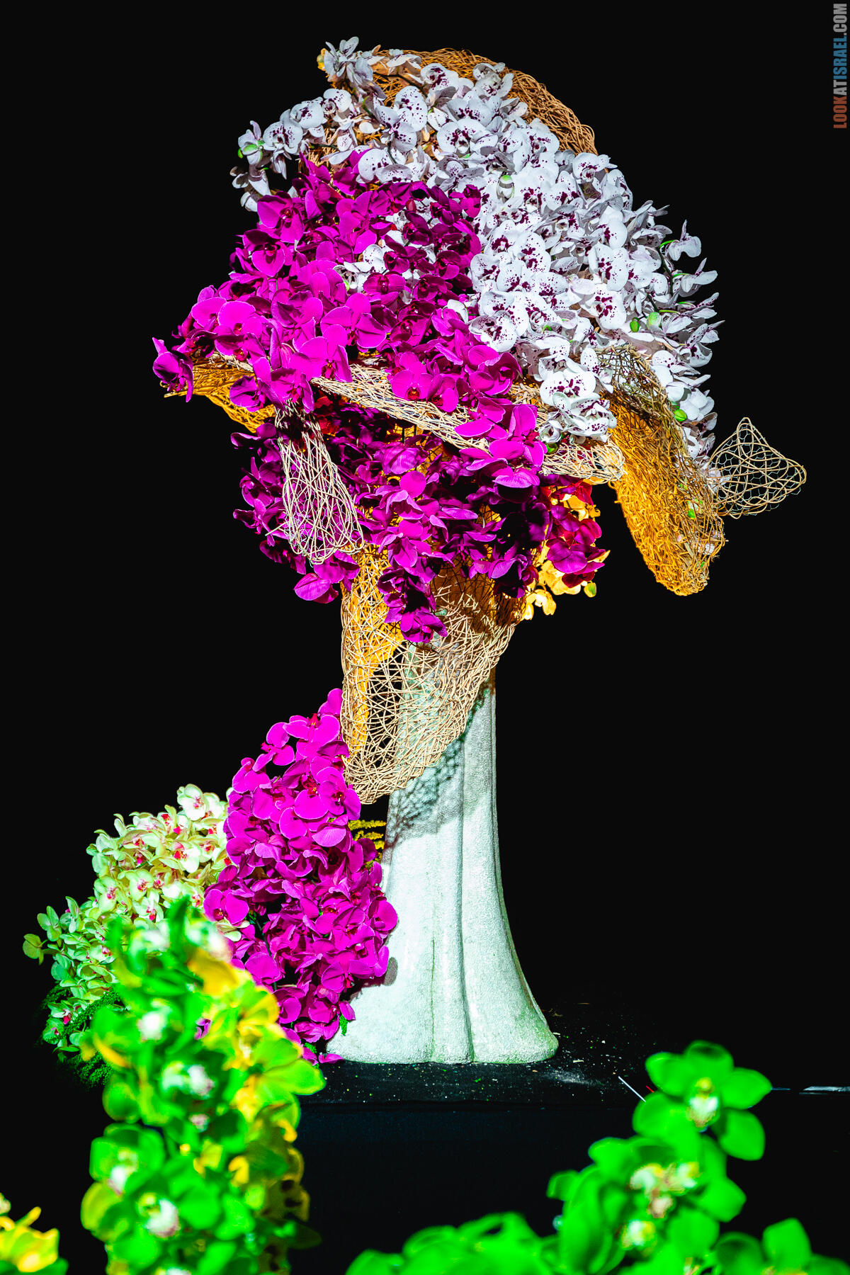 В выставке «участвуют» примерно 2,000,000 цветов, большая часть из которых специально доставлена в Израиль из других стран, Но есть в экспозиции и цветы, выращенные в нашей стране, в том числе, в окрестностях сектора Газа.