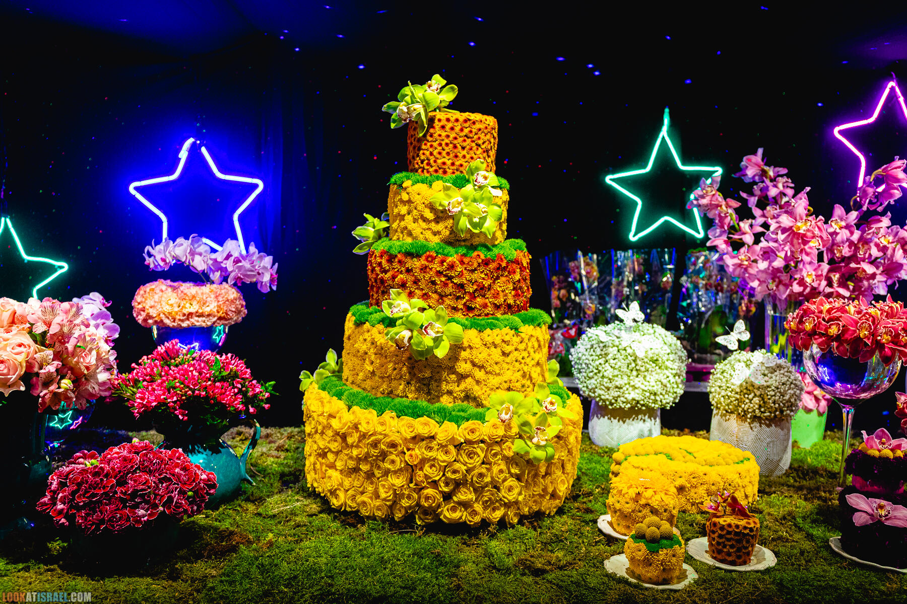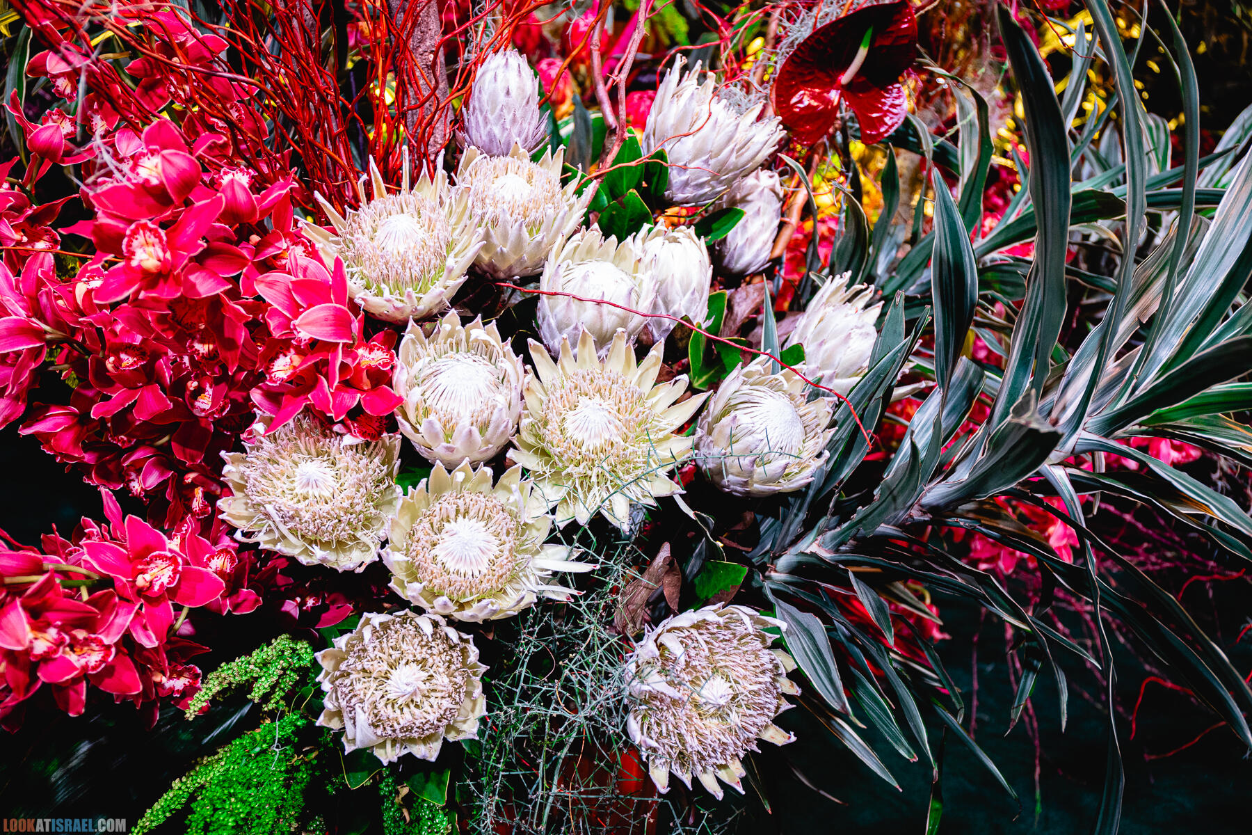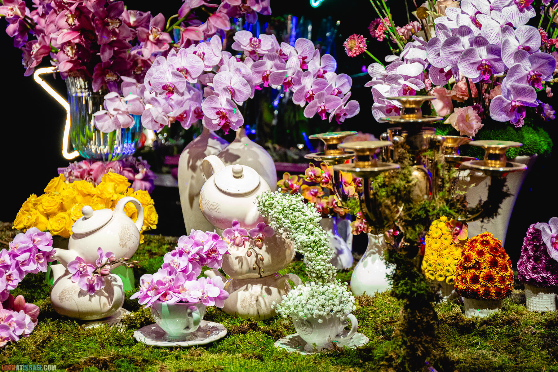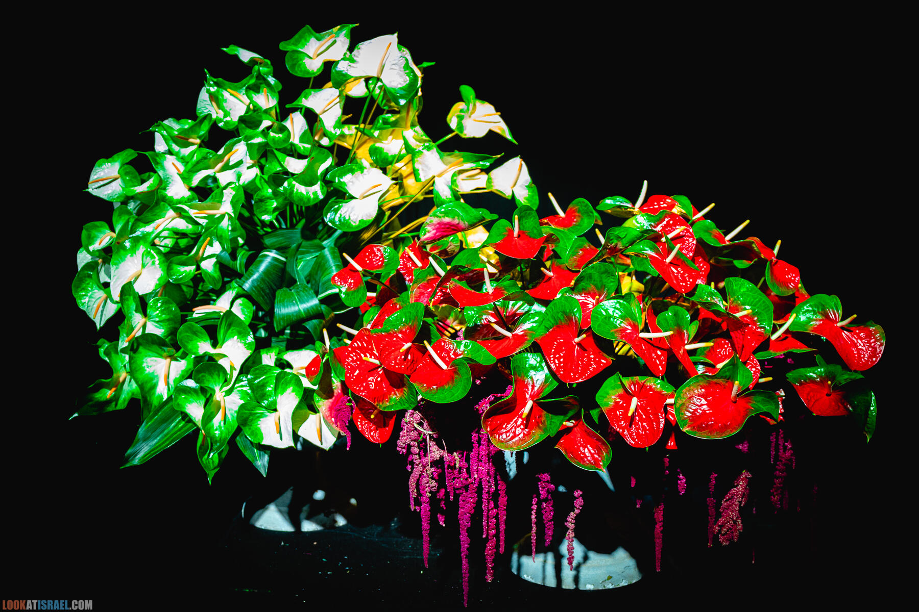 В выставке «участвуют» примерно 2,000,000 цветов, большая часть из которых специально доставлена в Израиль из других стран, Но есть в экспозиции и цветы, выращенные в нашей стране, в том числе, в окрестностях сектора Газа.