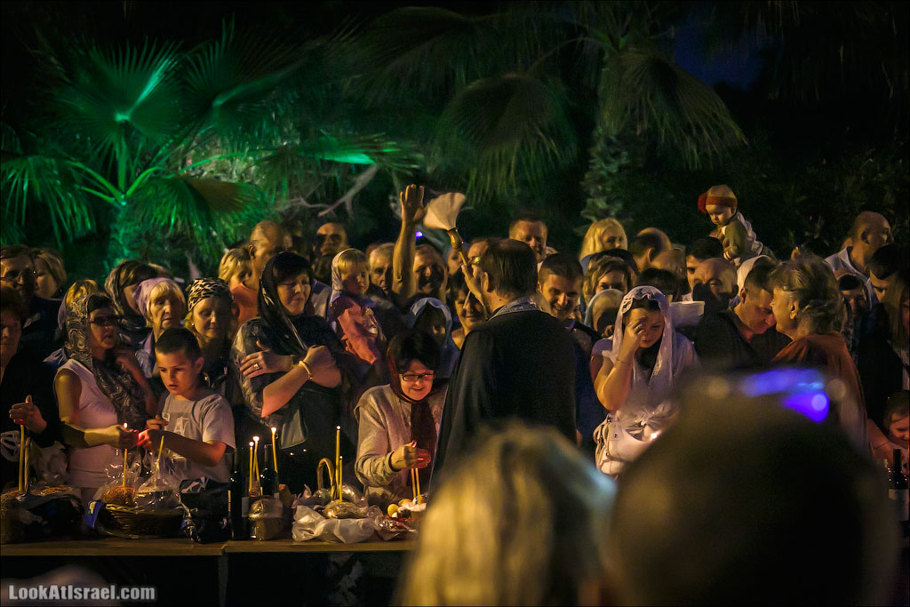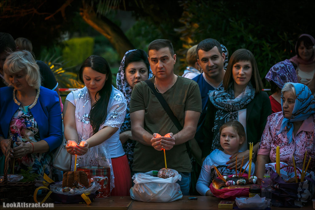отсюдаСегодня заканчивается великий пост и в русской православной церкви в Яффо прошла церемония освящения пасхальной снеди. Многие слышали и знают про пасхальные куличи и яйца. А вот зачем же их освящают?
