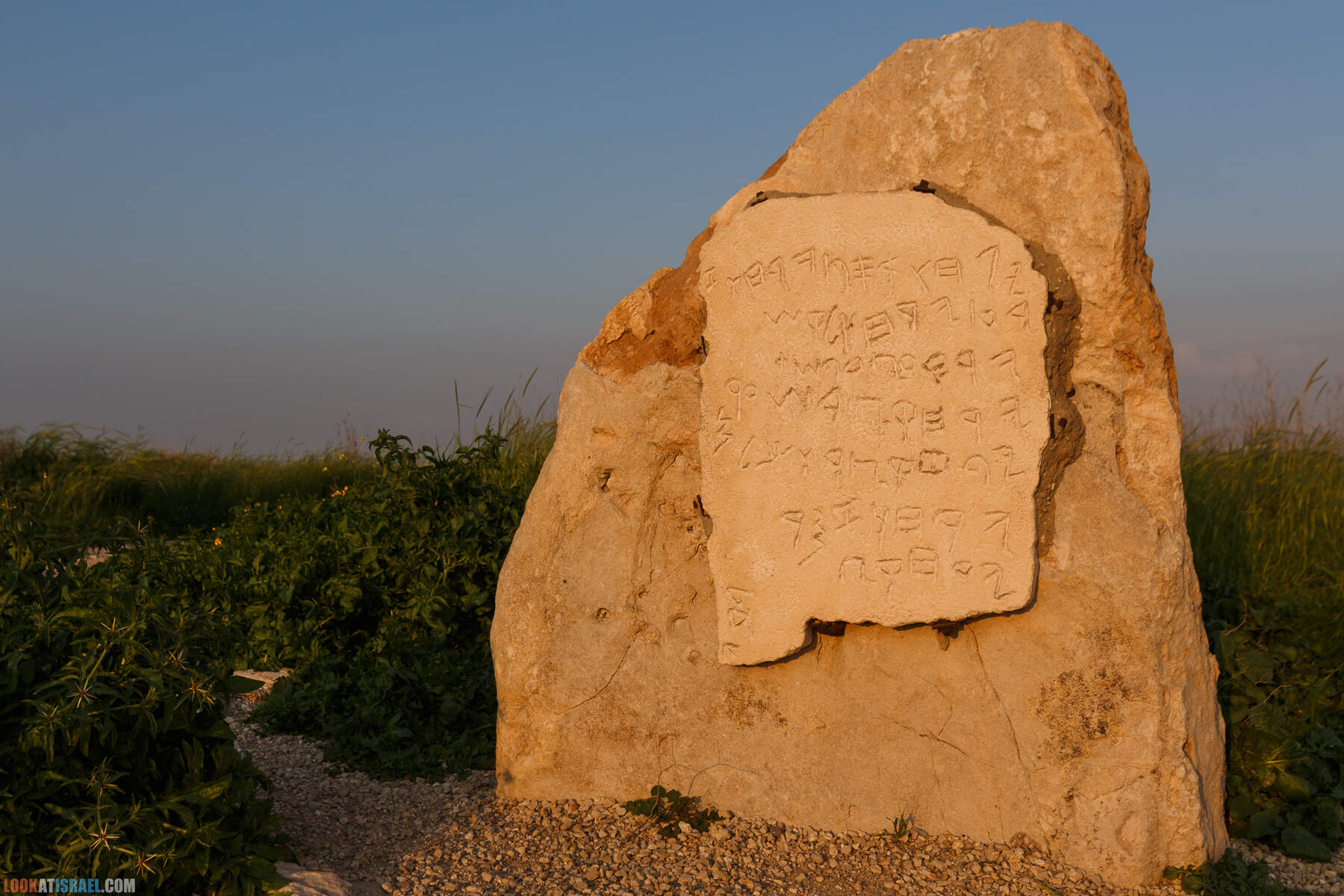 На вершине туристов встречает копия знаменитого календаря из Гезера — список 12 месяцев и конкретные указания, какие сельскохозяйственные работы производить в эти месяцы. Оригинальная панель размером 11.1х7.2 см, находится сейчас в археологическом музее в Стамбуле.