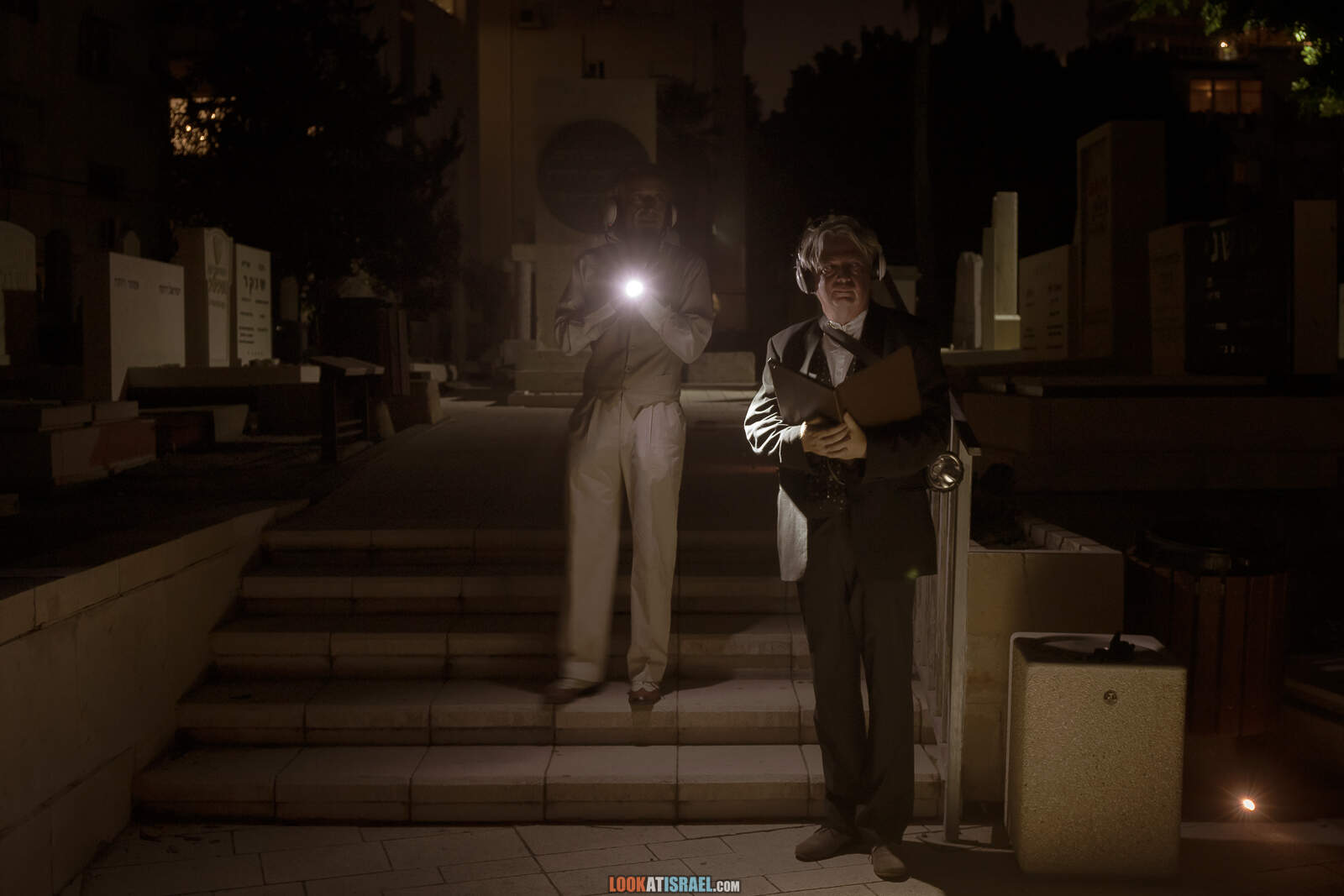 Что бы вы почувствовали, оказавшись одним тёмным летним вечером на старом кладбище, когда вдруг из-под своих каменных одеял начнут, кряхтя, подниматься исторические личности, чьи имена вы ежедневно встречаете в любом городе Израиля? Герцль, Бялик, Черниховски, Трумпельдор, а, может быть, даже сам Дизенгоф или отец-основатель Тель-Авива Акива Арие Вайс?..