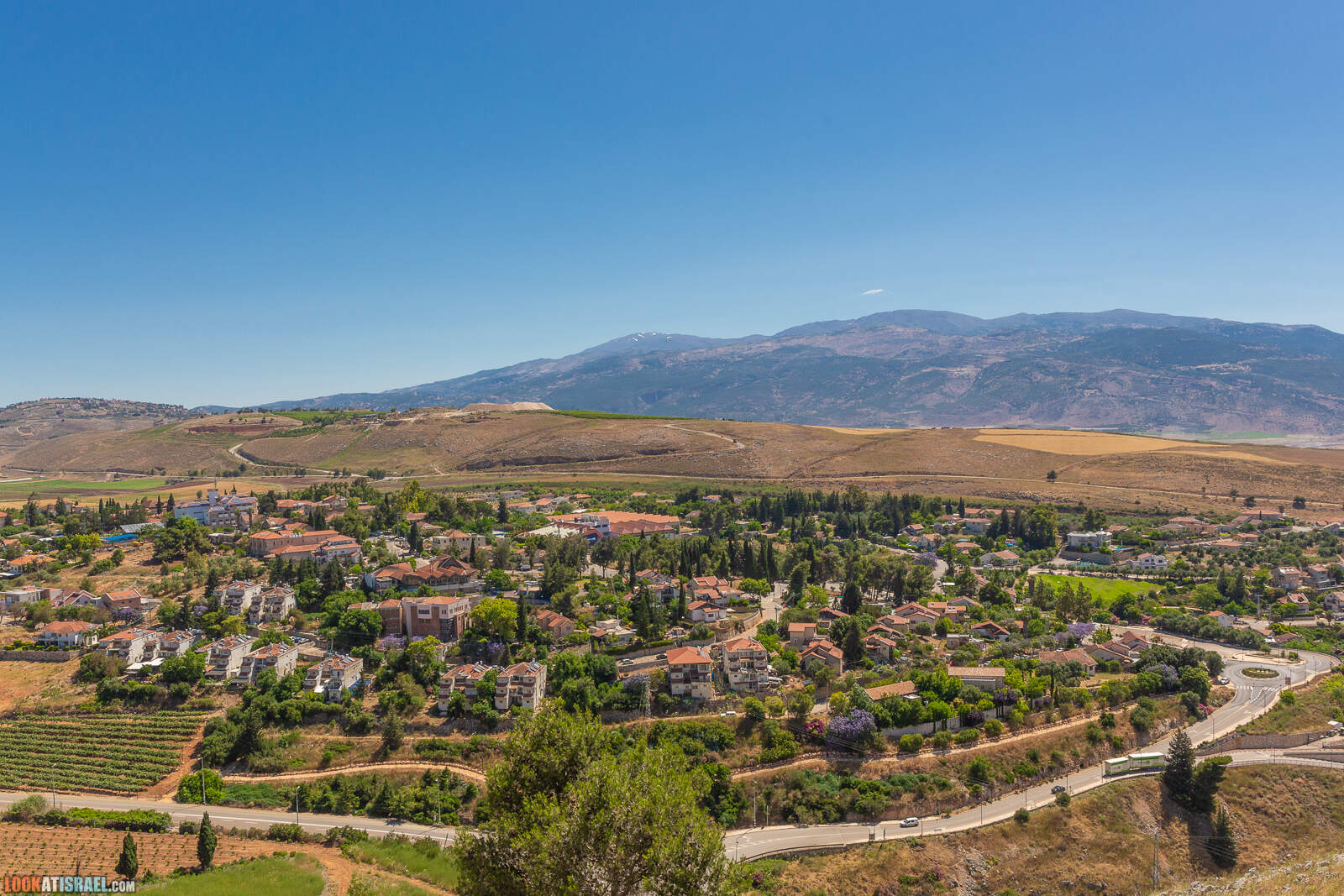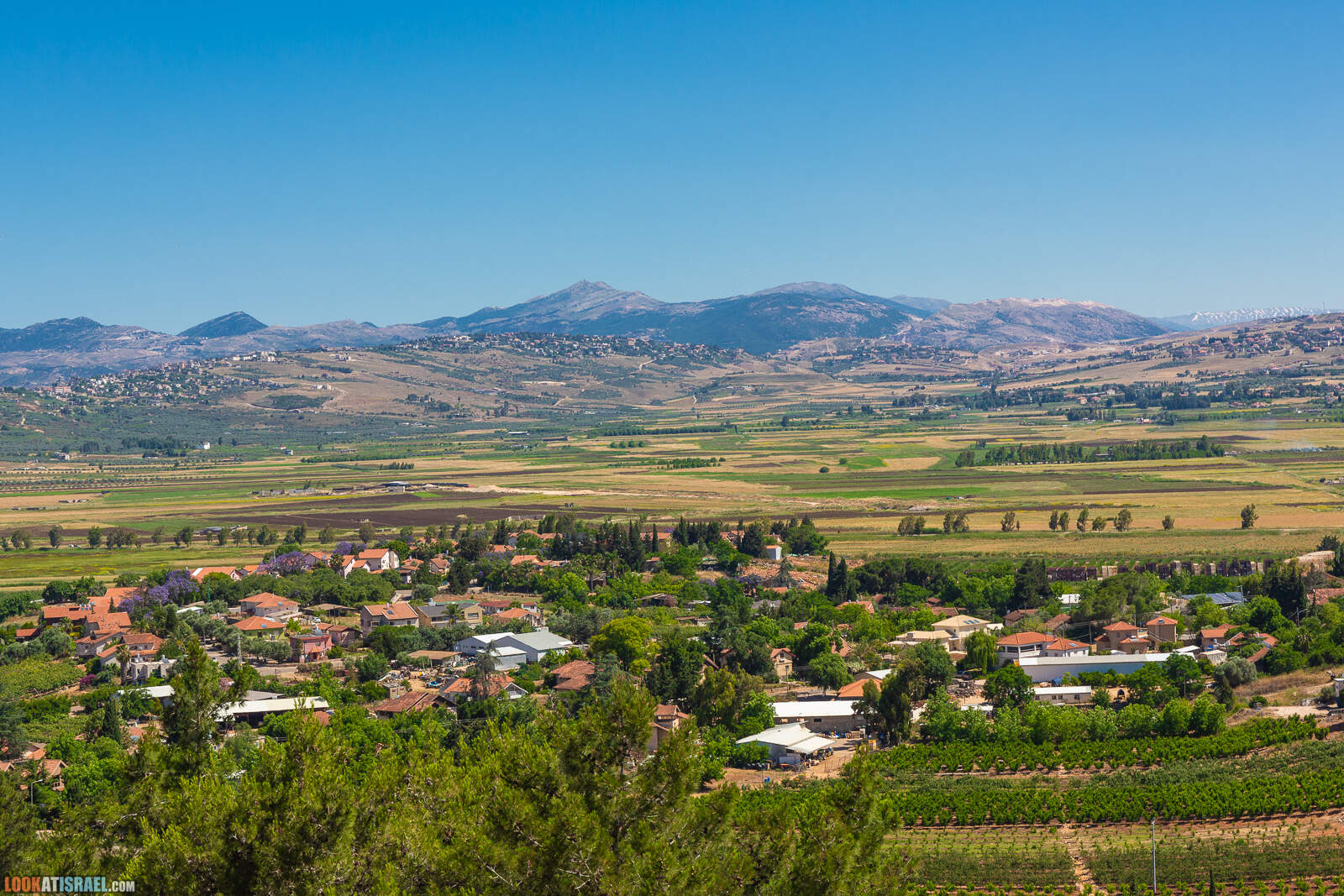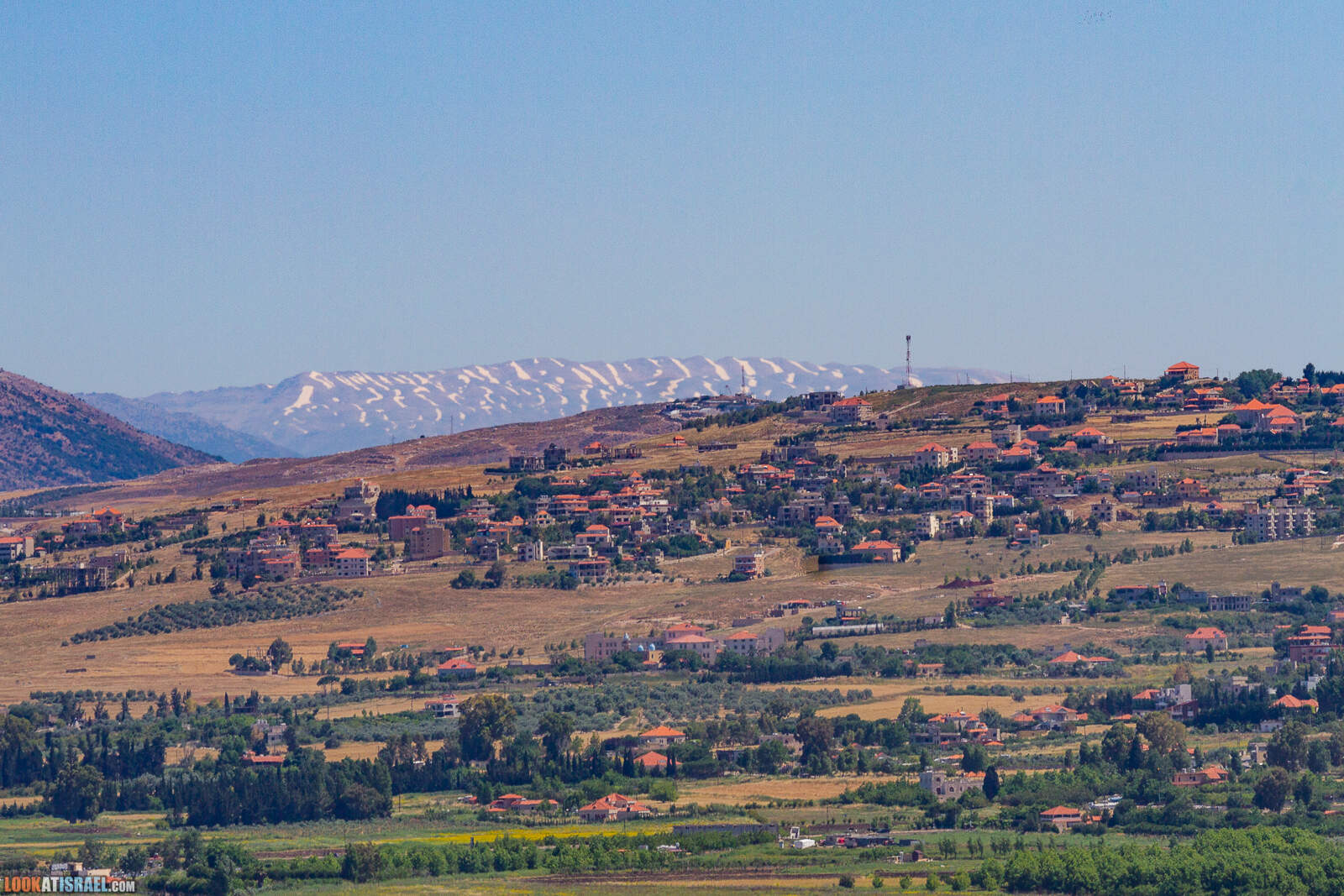 Если начать смотреть на север, то нельзя не увидеть ливанские деревушки на фоне ливанских же горных вершин, все еще покрытых снегом.