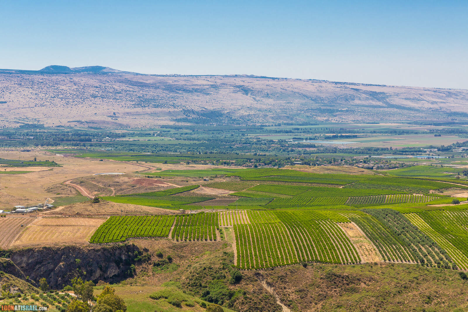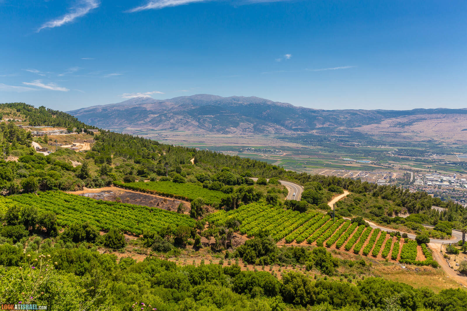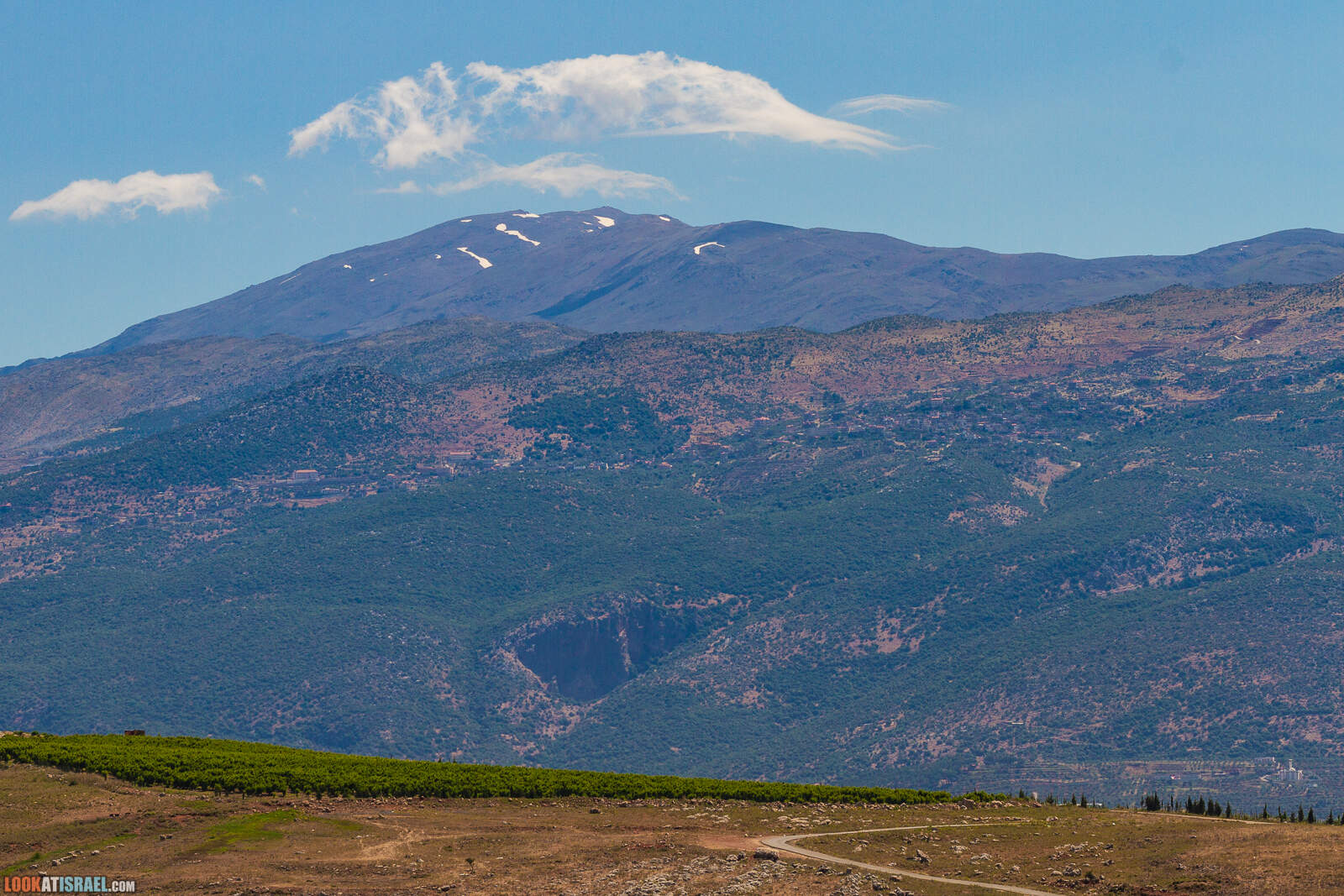 На сирийской вершине горы Хермон тоже еще есть снег. А в Ливане видно какое-то красивое ущелье и виноградники. Да-да, на этой фотографии есть и Сирия и Ливан, и нет Израиля.