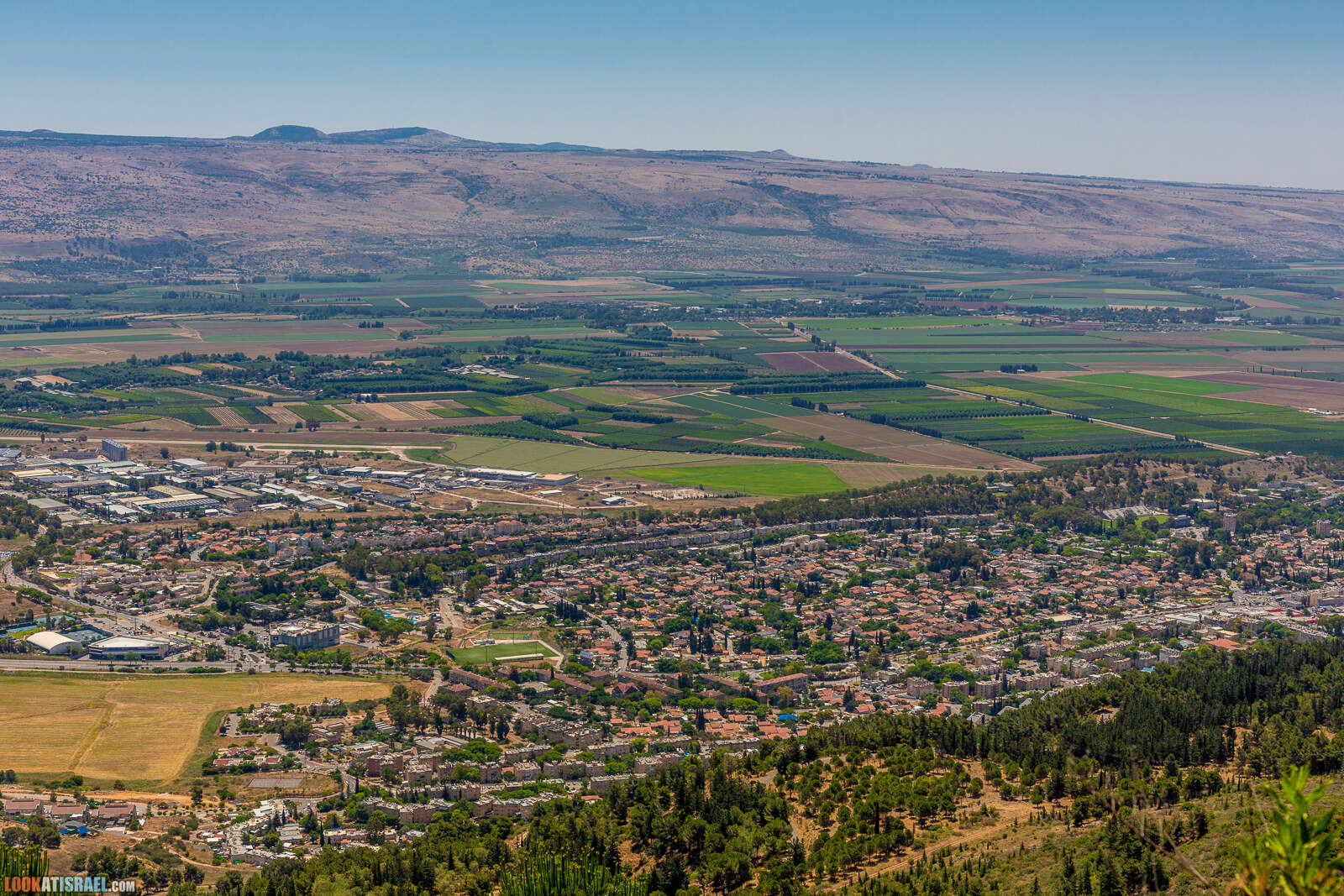 Из-за персиковых деревьев «выплыл» город Кирьят-Шмона.