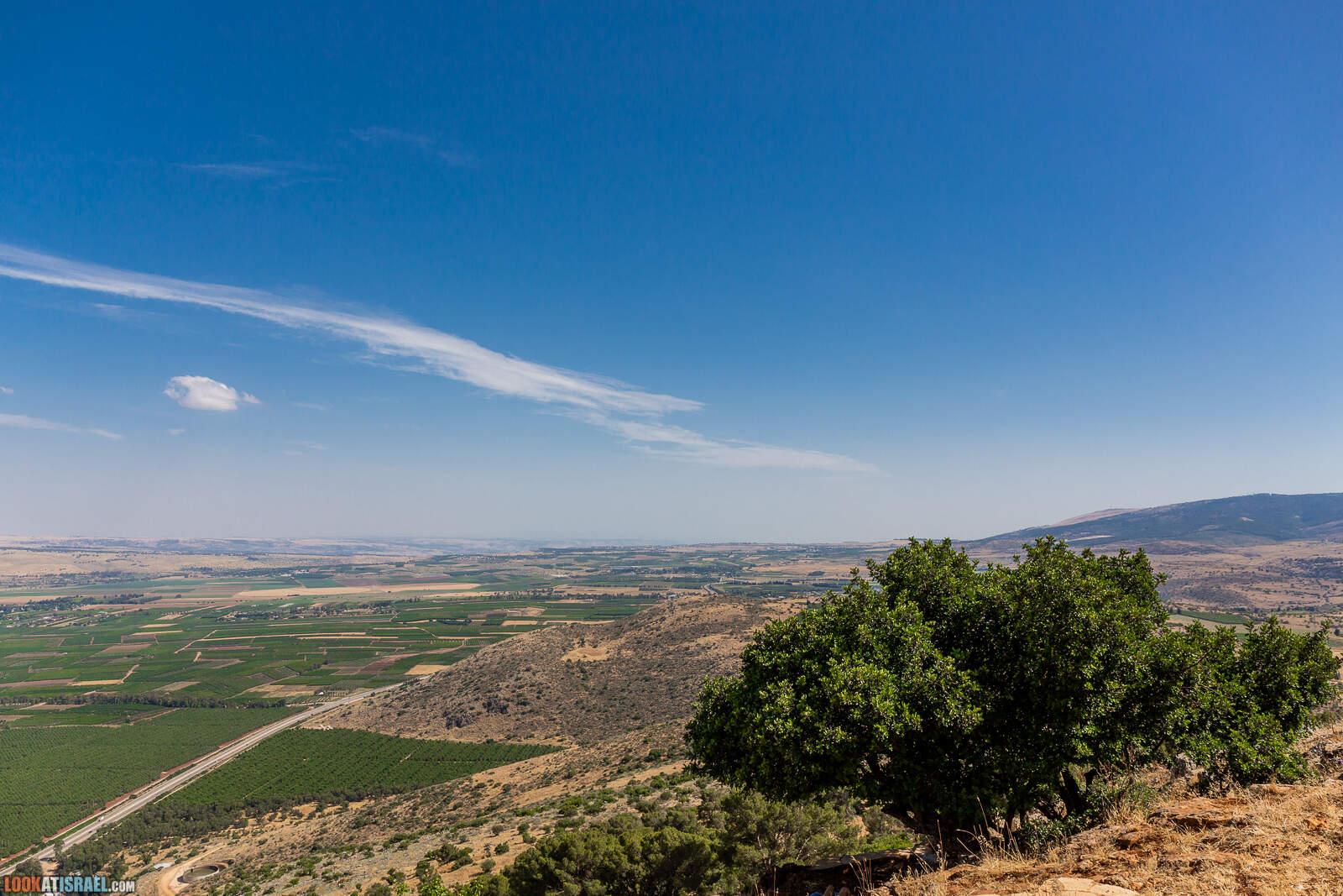 И совсем на юге долина Хула. Она еще долго будет сопровождать нас в этом путешествии. А справа виднеется Керен Нафтали — вершина, до которой нам предстоит доехать по не туристическим дорогам.