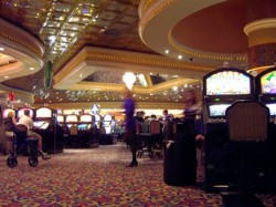 Выйдя из самолета, первый шаг по территории местного аэропорта привел в игровому автомату. Второй шаг и автоматов уже два. Три, пять, десять. У них здесь гнездо!!! Они здесь рождаются и не умирают. Игровые автоматы посвсюду! ВЕЗДЕ!!! И что интересно, за многими автоматами сидят и играют. И это только аэропорт. Сели в такси, а в спинках передних сидений… игровые автоматы. Через 15 минут мы приехали в нашу гостиницу — Stratosphere. Одна из дешевых, но нам то что, было б где пивасик наливали, да кровать была. Зайдя в холл на нас обрушился шум, звон, гам сотен игровых автоматов. Там не было ничего кроме них. Рядами стояли однорукие бандиты, столы для игры в покер и кости, различные рулетки, вариации всевозможных игр. И все это шумело, играло какую то свою мелодию, звенело, разговаривало, манило женскими голосами. За всеми автоматами сидели игроки и расставались со своми деньгами. Нечто невообразимое. А времени всего то часов 8-9 утра. И не было видно ни дверей, не лифтов, ни ресепшина.
