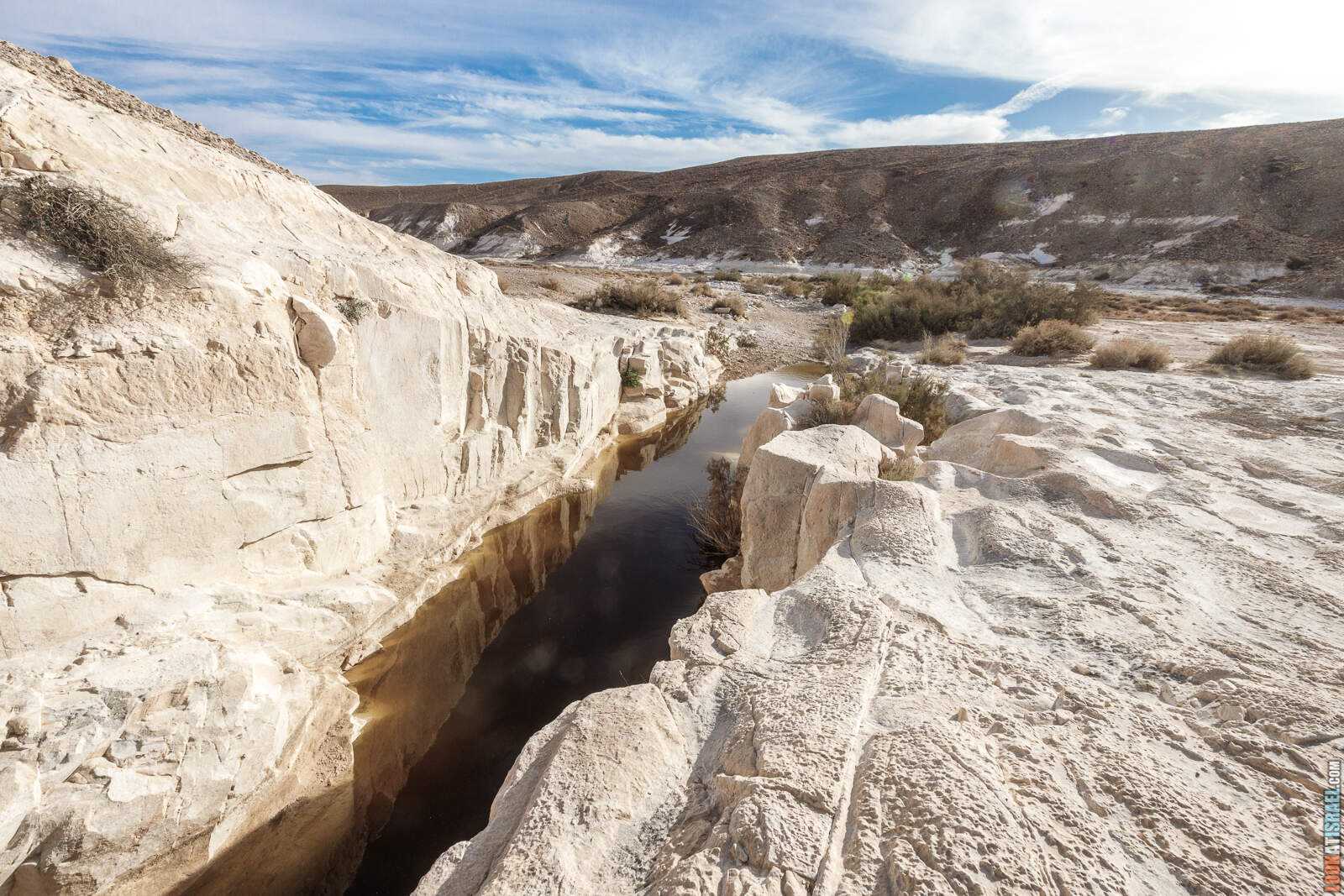 Жители Израиля наслышаны про ручей Фаран, который стабильно каждый год смывает дорогу №40. Так вот одним из «поставщиков» дождевой воды для него является ручей Саги в русле которого и находится Белый каньон.