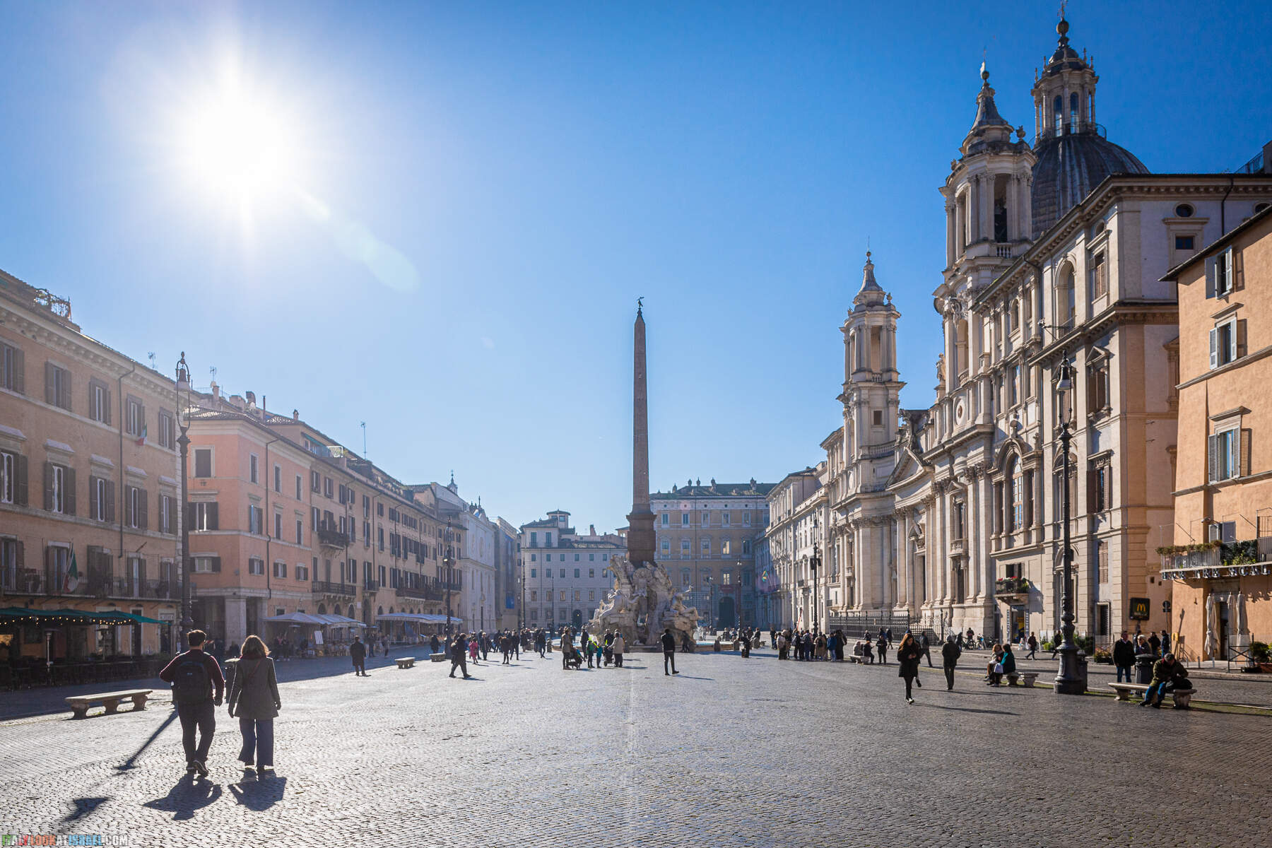 В центре площади расположен Фонтан Четырех Рек (Fontana dei Quattro Fiumi)
