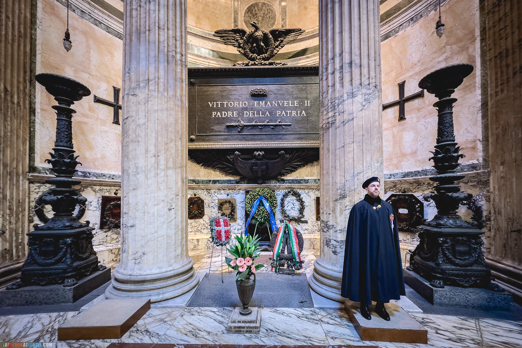 Как ни крути, а Пантеон это храм, а в храмах всегда хоронили великих. Одним из таких стал «Padre delle patria» — Отец Отечества — первый король объединённой Италии Виктор Эммануил II Савойский.