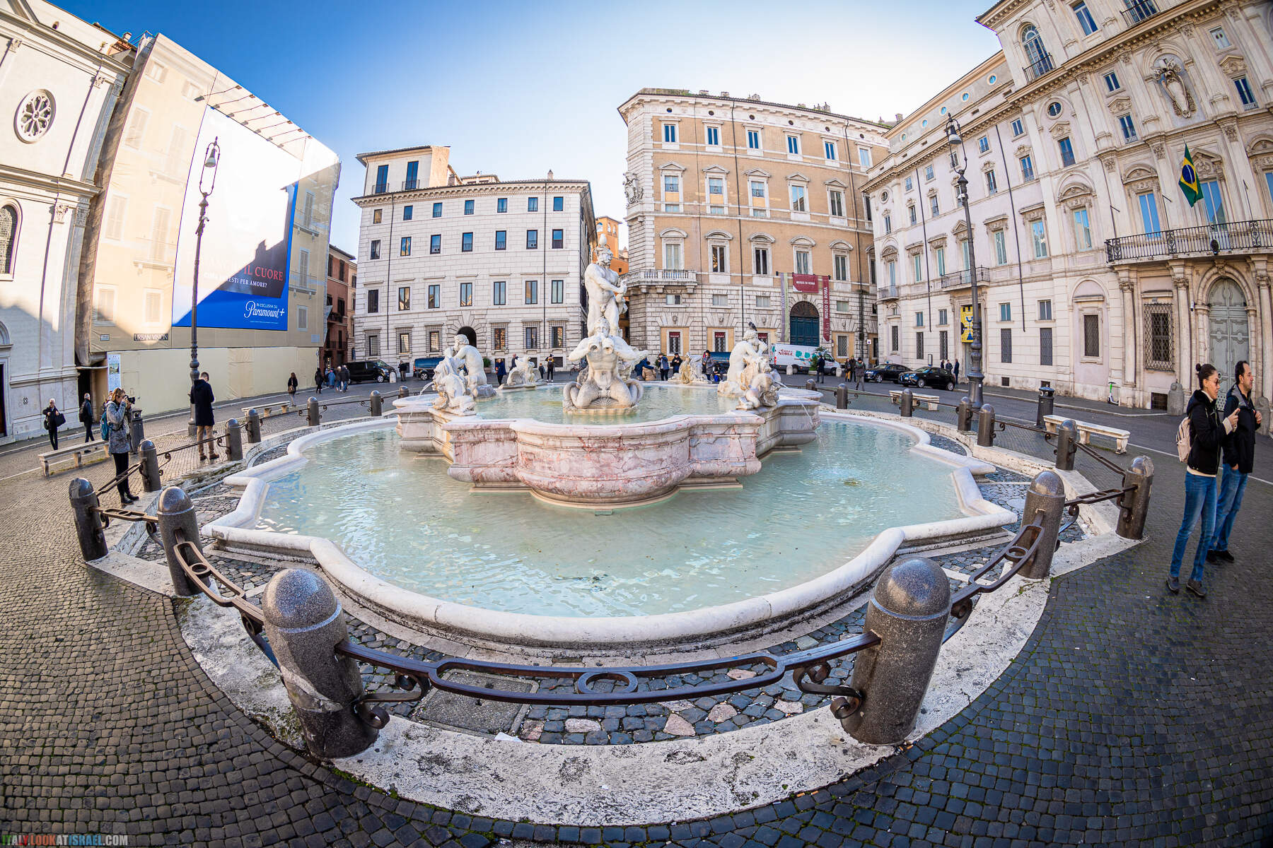 Когда-то тут был стадион Домициана, а нынче большая площадь с тремя фонтанами, первый из которых Фонтан Нептуна.