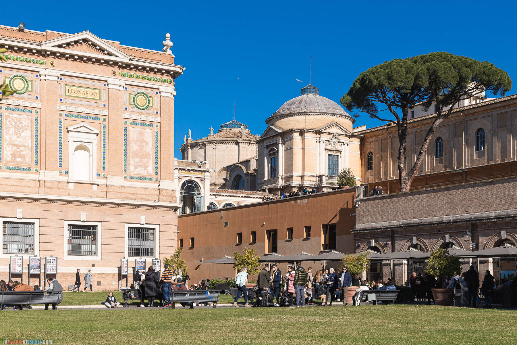 Моя голова придумала такое объяснение этому факту — в 8 утра начинается служба и Папа сам лично ходит теми же дорожками, и поэтому туристам там делать нечего.