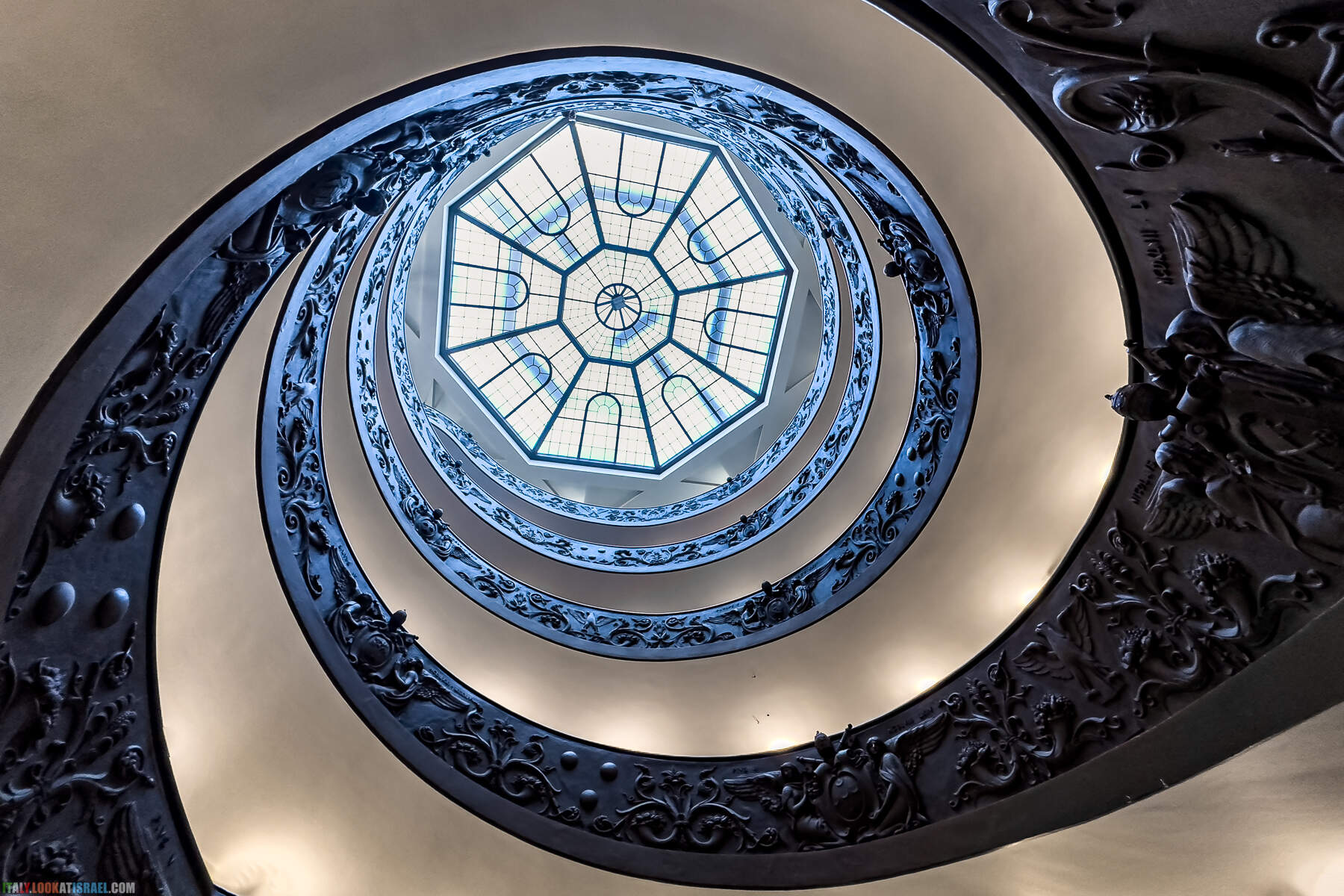 А вот копия от Джузеппе Момо, построенная в 1932 году вполне доступна всем. Его лестница, как и у Браманте, представляет собой двойную спираль, с аллегорией на молекулу ДНК. Она состоит из двух лестниц, которые позволяют людям подниматься и спускаться, не пересекаясь друг с другом. Но, к сожалению, одна лестница закрыта, поэтому по этой лестнице можно только выйти.
