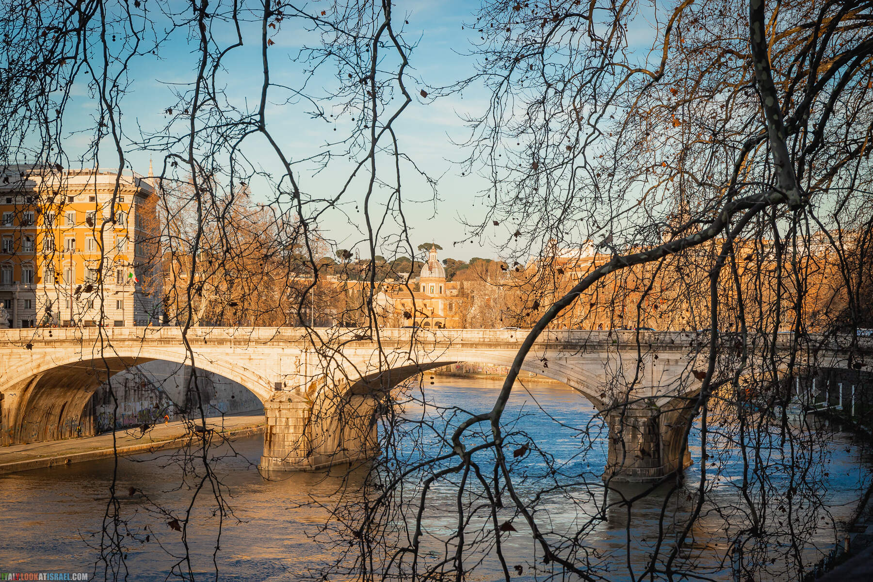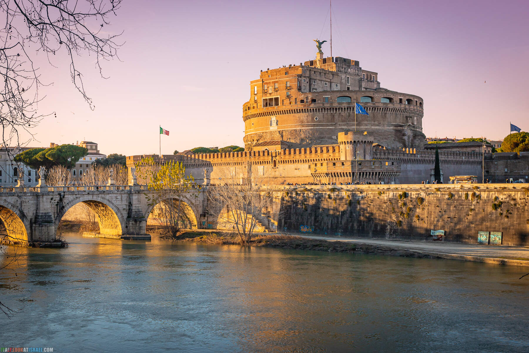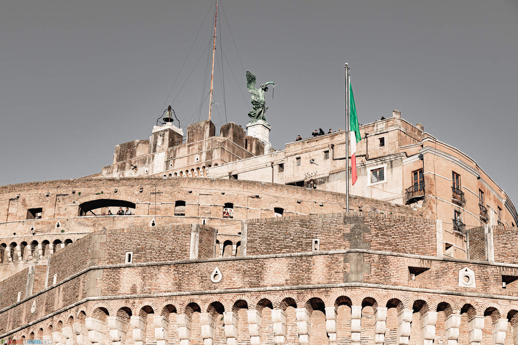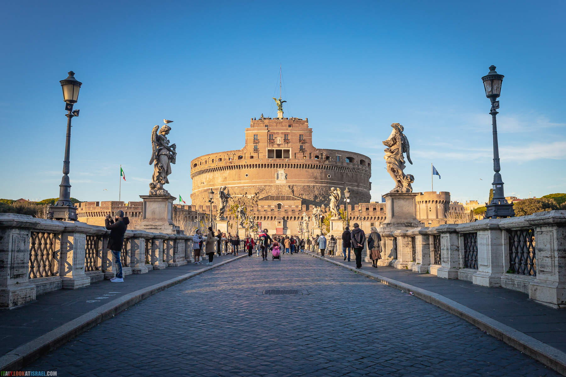 Поэтому я нашел пиццерию другую и по мосту, напоминающему Карлов мост в Праге и мимо замка Святого Ангела мы пошли туда.