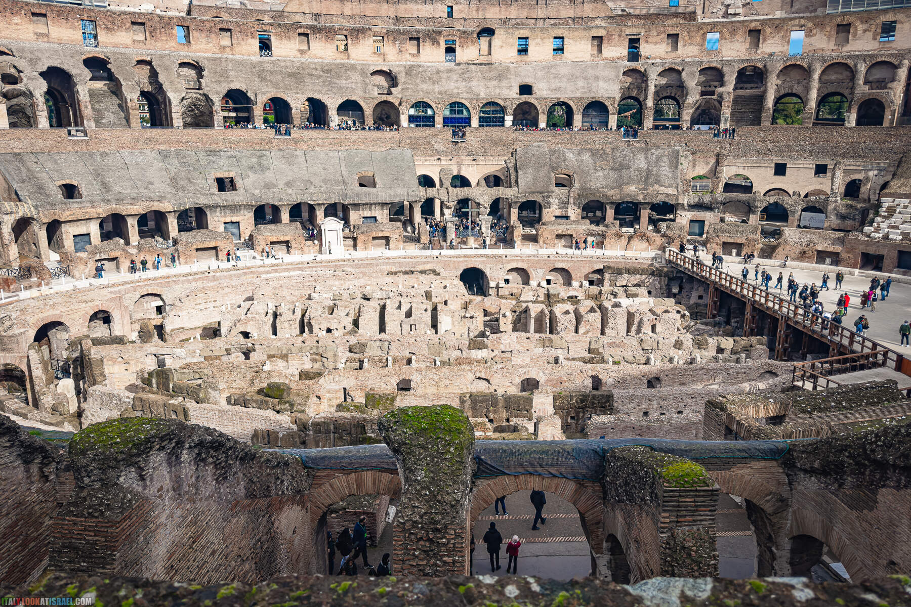 Ариведерчи то конечно случится, но часов через 12. Пока же осталось одно «must see» для первого визита место, где гибли кони, люди, звери. А потом прямо в центре стояла церковь. В история сего чуда света «принимали участие» евреи (не по своей воле) и здесь же впервые выяснилось, что деньги не пахнут. Имя ему — Колизей.