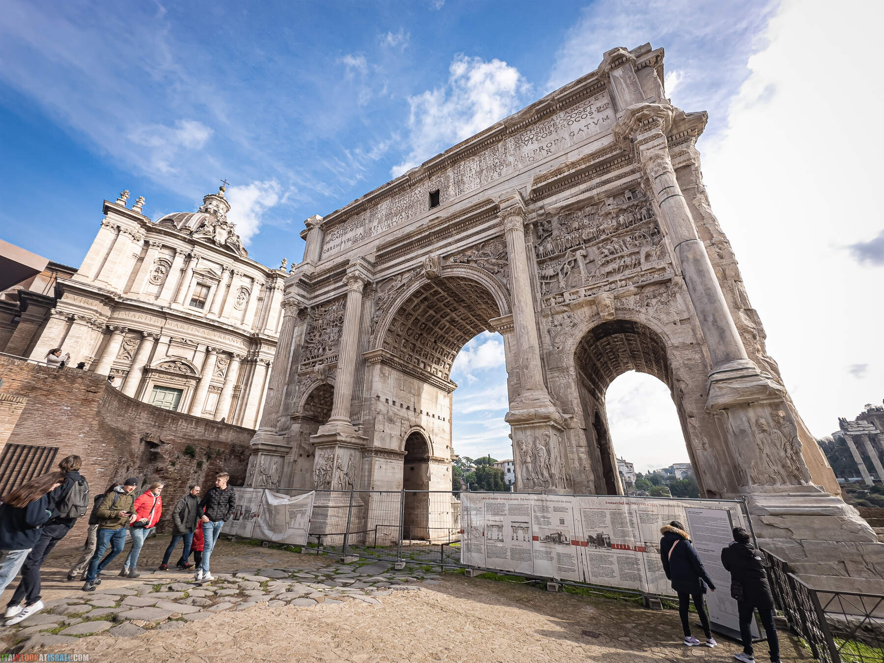 Один из наиболее известных памятников на Римском Форуме — это Триумфальная арка Септимия Севера, которая была построена в 203 году и посвящена великому римскому императору Септимию Северу и его сыновьям Каракалле и Гете.