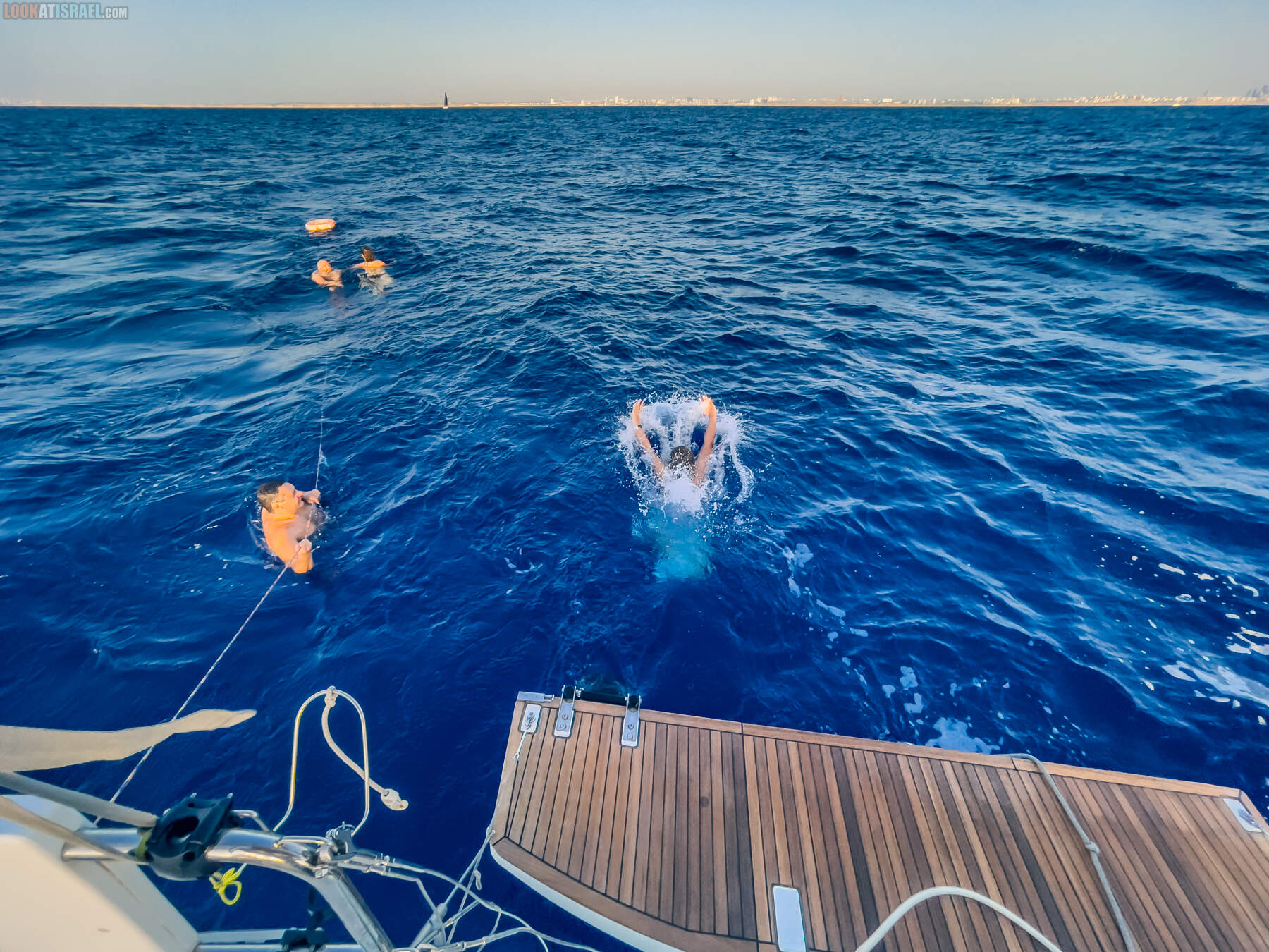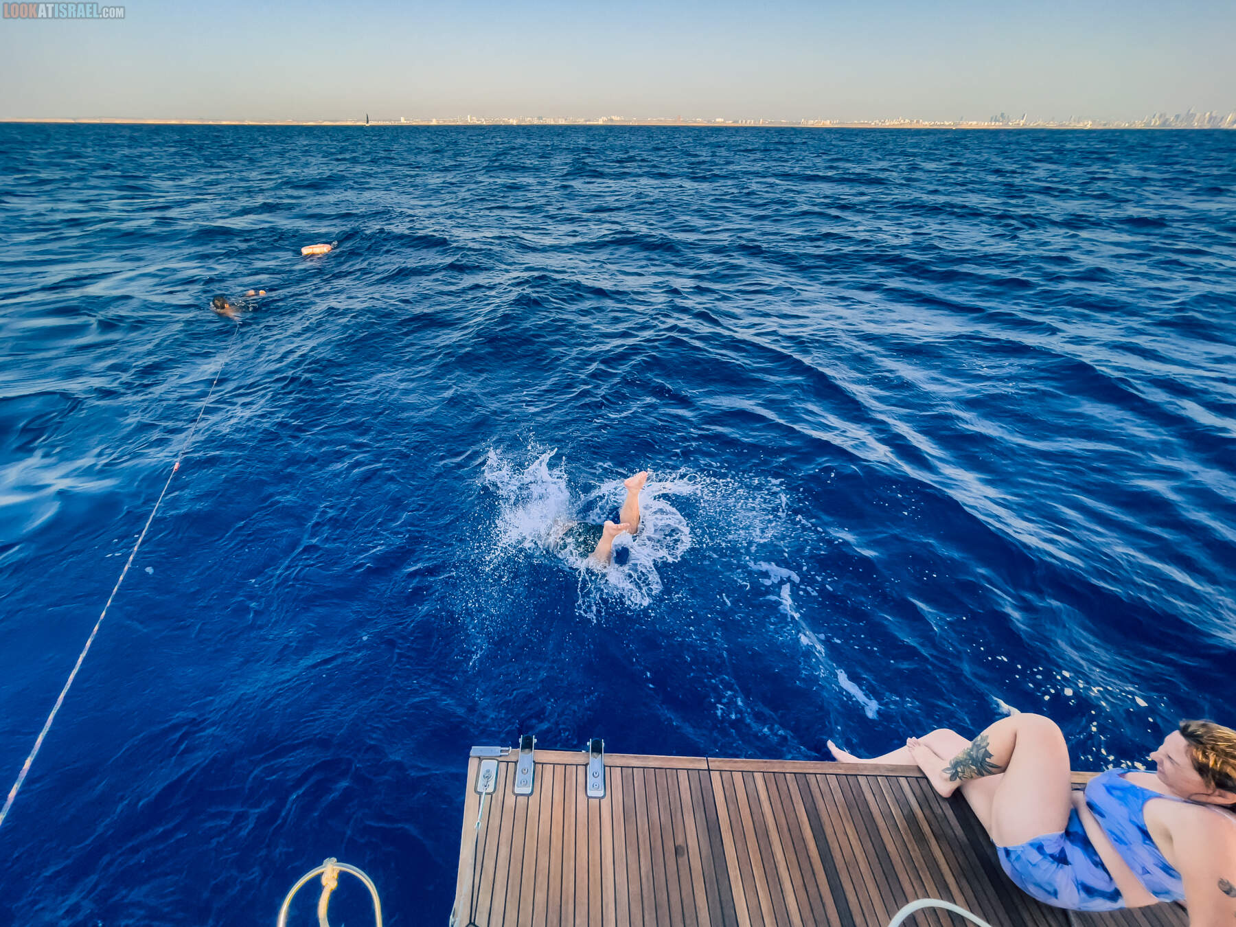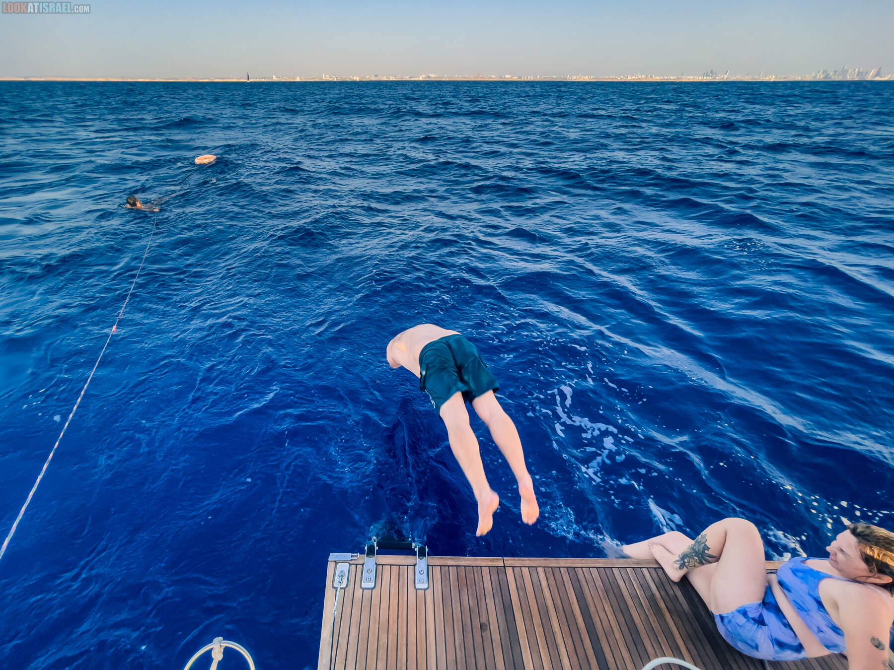 А еще, прыгая с яхты в море нужно помнить, что яхта не стоит на месте и постоянно движется. Так что с момента как вы прыгнете в воду до момента как вынырните яхта уже будет в несколько метрах от вас.