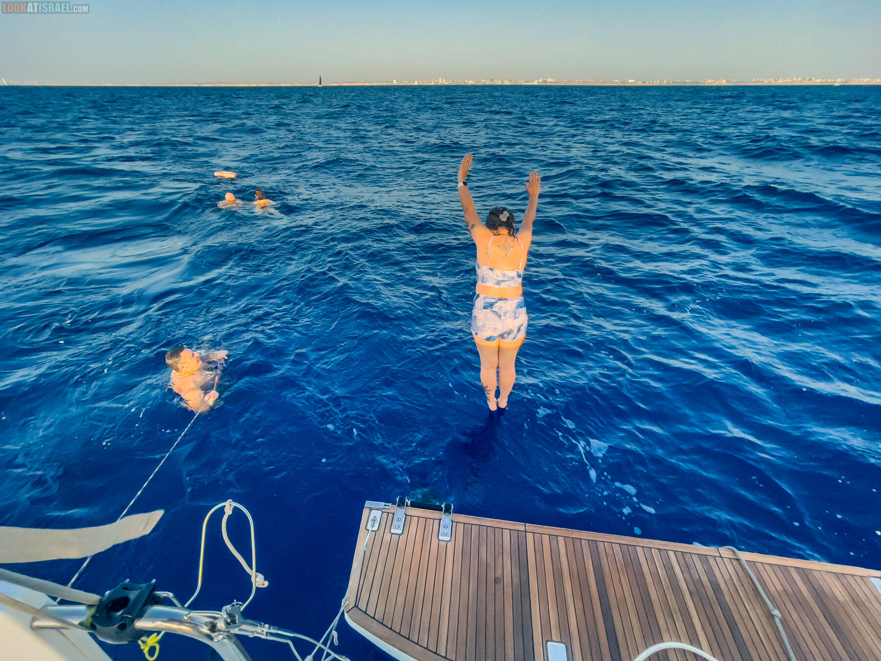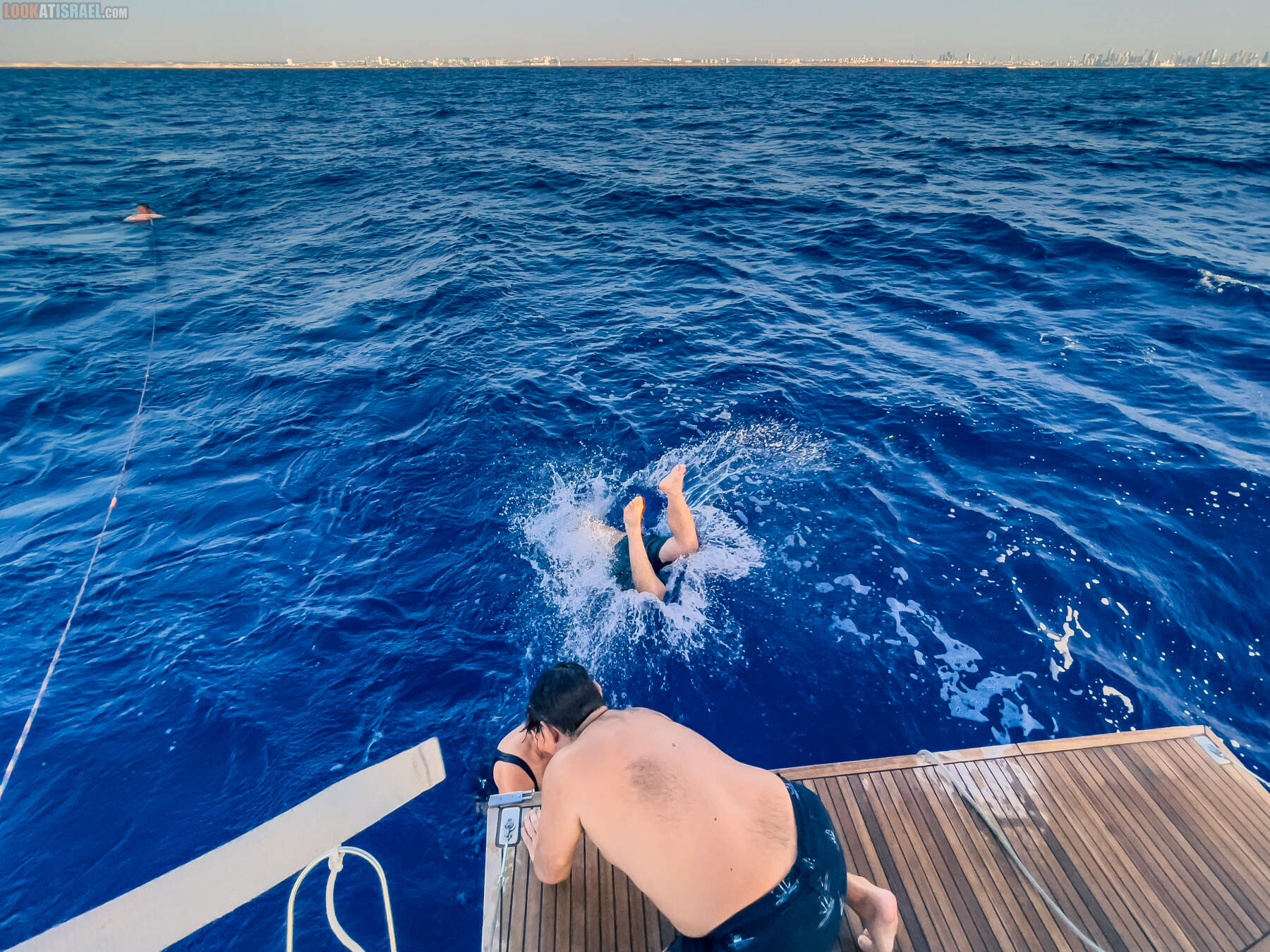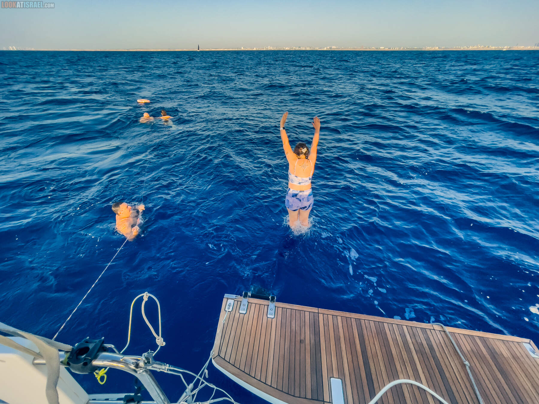А еще, прыгая с яхты в море нужно помнить, что яхта не стоит на месте и постоянно движется. Так что с момента как вы прыгнете в воду до момента как вынырните яхта уже будет в несколько метрах от вас.