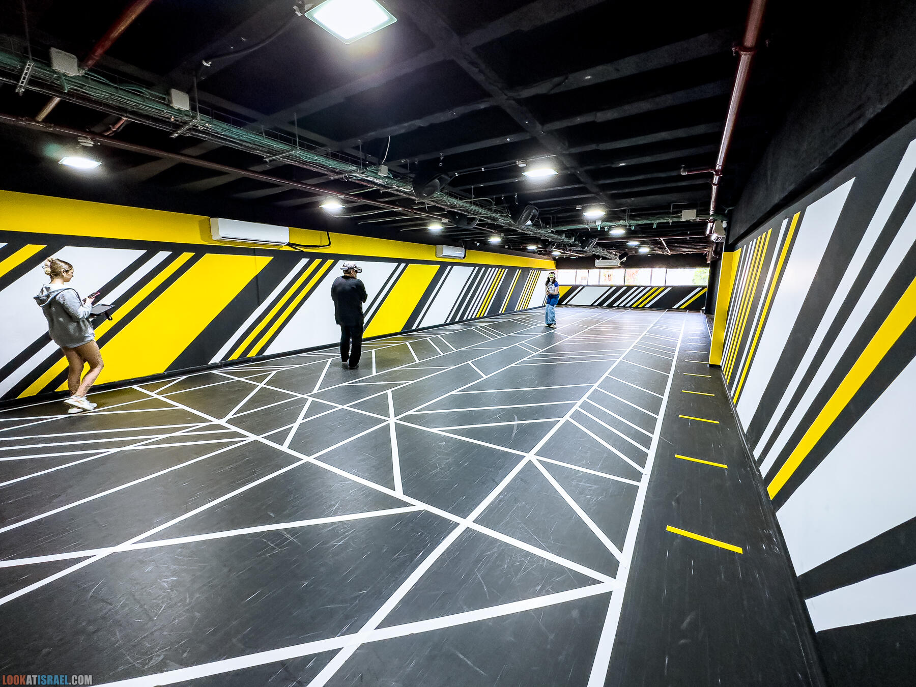 Пустой прямоугольный зал, и только работающие кондиционеры и расчерченный белыми полосами пол намекают на то, что здесь что-то происходит.